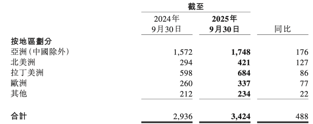 从名创优品内地门店分布来看,截至2025年9月30日,其在一线城市、二线城市、三线或以下城市分别设有门店584、1817以及2006家,其中同比增幅最高的是三线或以下城市,新增达90家,此外二线城市新增46家,一线城市增幅最小,为21家;海外门店数量为3424家,同比增长488家,亚洲(中国除外)和北美洲等地区增长显著。
